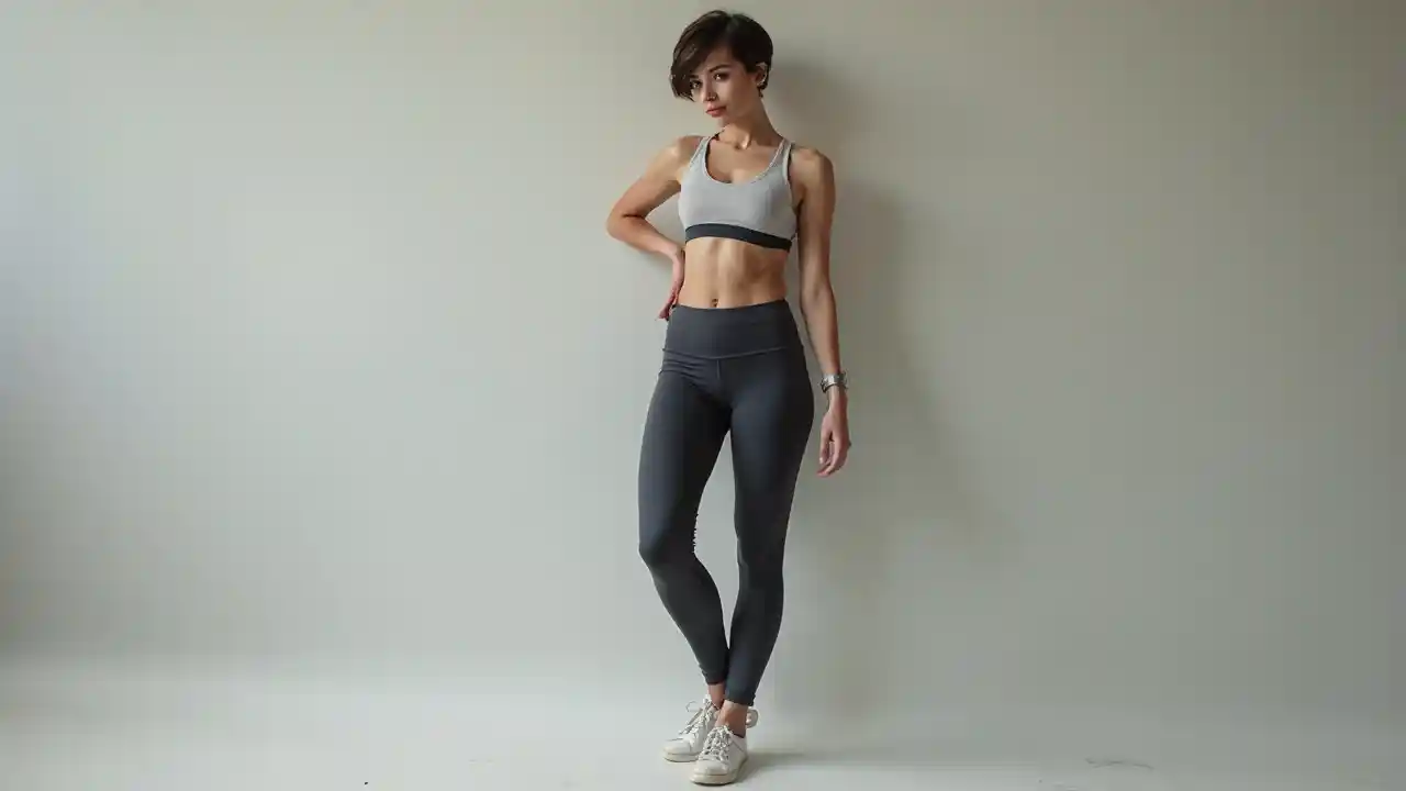 Das sportliche Mädchen mit hippen, kurzen Haaren und trendigen Outfits