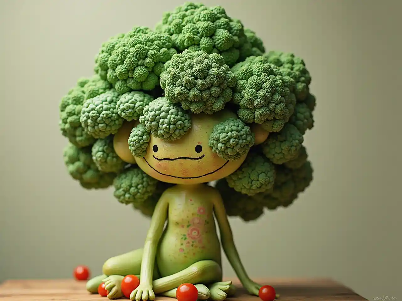 Gemüse - Mensch, Brokkoli, Tomate, Zwiebel, Gemüse, mehrfarbig, grün, süße Frau, kein Gesicht, menschliche Form, kein Gesicht, ganze Figur