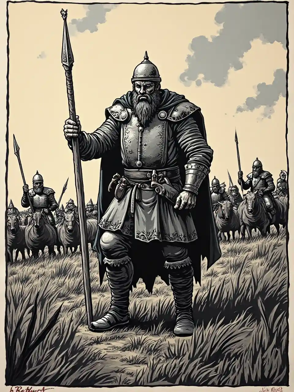 DanielPreisgekrönter Linocut für Wikinger auf dem Schlachtfeld
