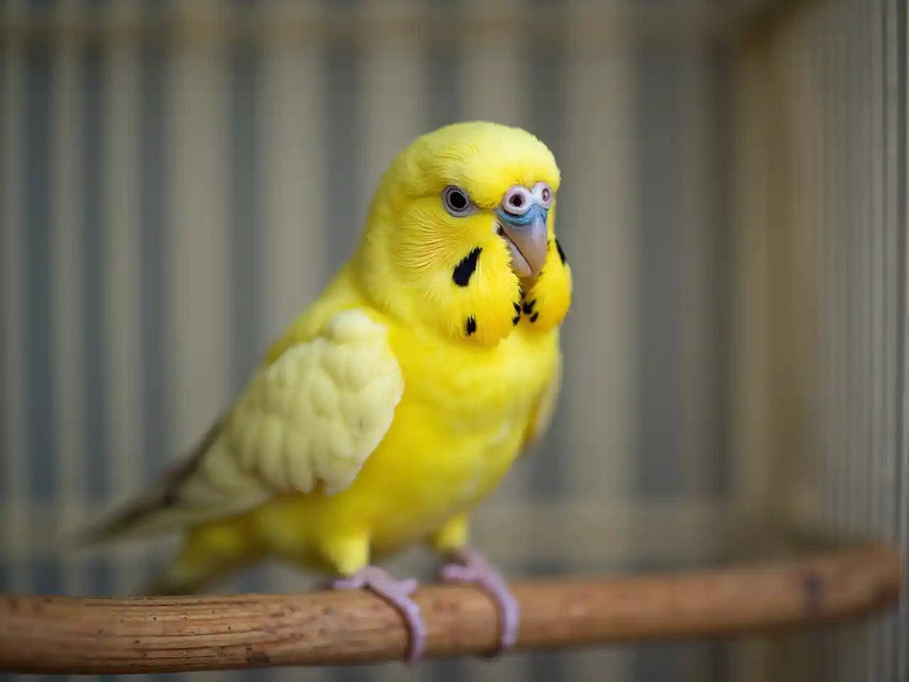 Ein kleiner Kapagei sitzt im Käfig, der fröhliche Papagei