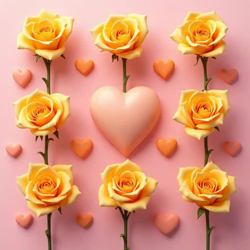 12 gelbe Rosen und rote Stimmung Valentinstag, rosa Hintergrund