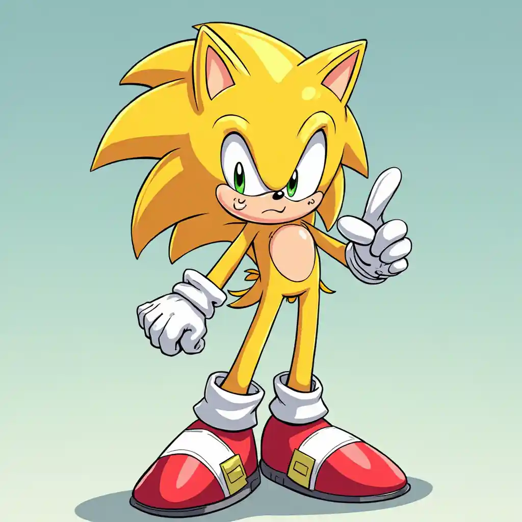 ANNAYellow Sonic Super-Ganzkörper-Charakter, hohe Qualität, 2D-Kunstanime im Stil der 80er Jahre