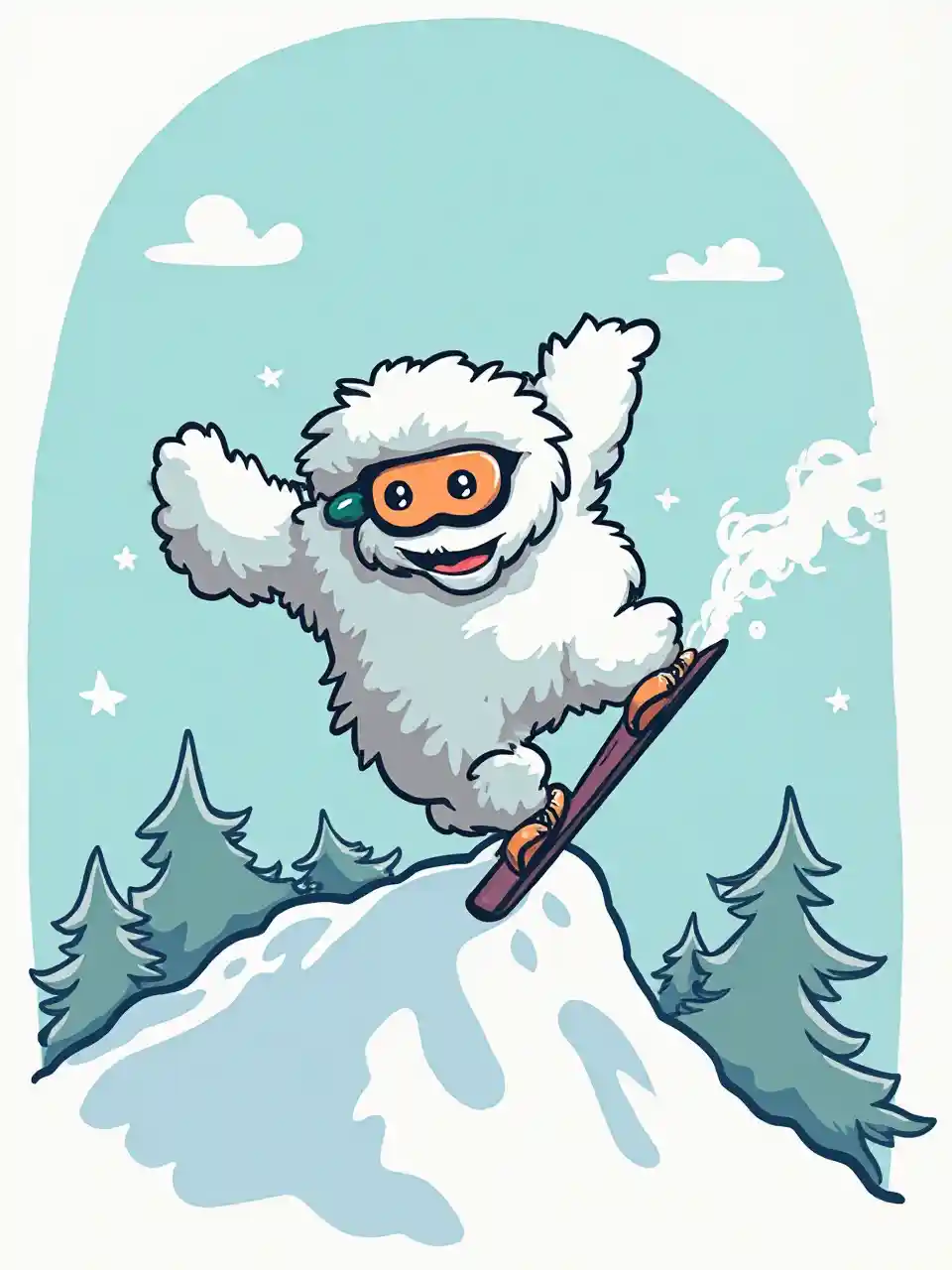 JaxonSchneemann-Maskottchen Snowboard den Berg runter, einfache Farben, Logo, Illustrationsstil, niedlich, freundlich.