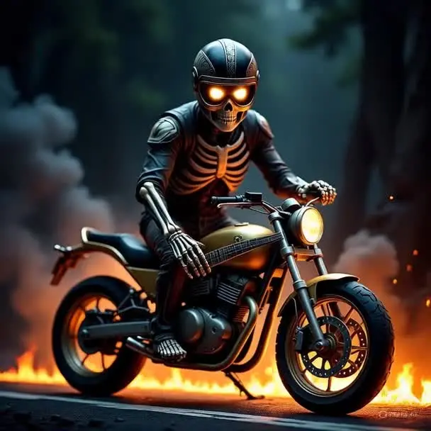 In einer epischen Szene dreht sich ein Skelett in einer glatten schwarzen Lederpanzerung in einem feurigen Wald, und seine leuchtenden Augen durchdringen Rauch und Flammen. Das Motorrad brüllt aus dem Leben und umarmt das Chaos um sich herum. Mit einem Helm, der perfekt zu seinem dunklen Outfit passt, scheint der düstere Reiter das Wesen des Todes selbst herauszufordern. Wenn Sie dieses Video faszinierend finden, werden Sie bestimmt von den unglaublichen Fähigkeiten von Dreamface überwältigt! Mit einer riesigen Bibliothek mit Hunderten von KI-Effektvorlagen können Sie Videos in verschiedenen Stilen erstellen und Ihre wildesten Visionen zum Leben erwecken. Ob faszinierende Fantasiegebiete oder herzerwärmende Bewegungsfolgen, Dreamface bietet eine Fülle von Funktionen, die Ihre Ideen in faszinierende Erzählungen verwandeln. Tauchen Sie ein, lassen Sie Ihre Kreativität frei; es ist ein Erlebnis, das Sie nicht missen möchten!