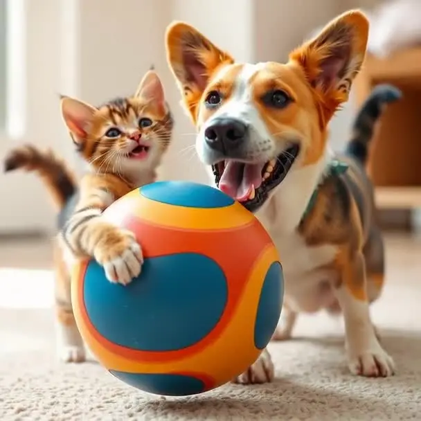 Beobachten Sie in dieser angenehmen Szene einen süßen Corgi-Hund und ein verspieltes Kätzchen bei einem Mini-Abenteuer auf dem Teppich! Bunte Bälle rollen hin und her und entzünden ihre natürliche Neugier und ihren spielerischen Instinkt. Der Corgi-Hund wedelt aufgeregt mit dem Schwanz, während sich das Kätzchen in einem Haufen weicher Felle und feiner Krallen ins Gesicht stürmt. Jeder Moment ist voller Freude, Lachen und endloser Niedlichkeit! Möchten Sie einen solchen herzerwärmenden Moment in Ihrem eigenen Video festhalten? Mit den umfangreichen KI-Effekten von Dreamface können Sie Ihre Alltags-Linse in ein faszinierendes Erlebnis verwandeln. Wählen Sie aus Hunderten von Vorlagen und fügen Sie Ihren Videos eine Handvoll Kreativität und Talent hinzu. Ob Sie Spaßfilter oder dramatische Effekte wünschen, Dreamface hat Sie auf jeden Fall überdeckt. Erstellen Sie Ihren einzigartigen Stil heute und bringen Sie Ihr Publikum zum Lächeln!