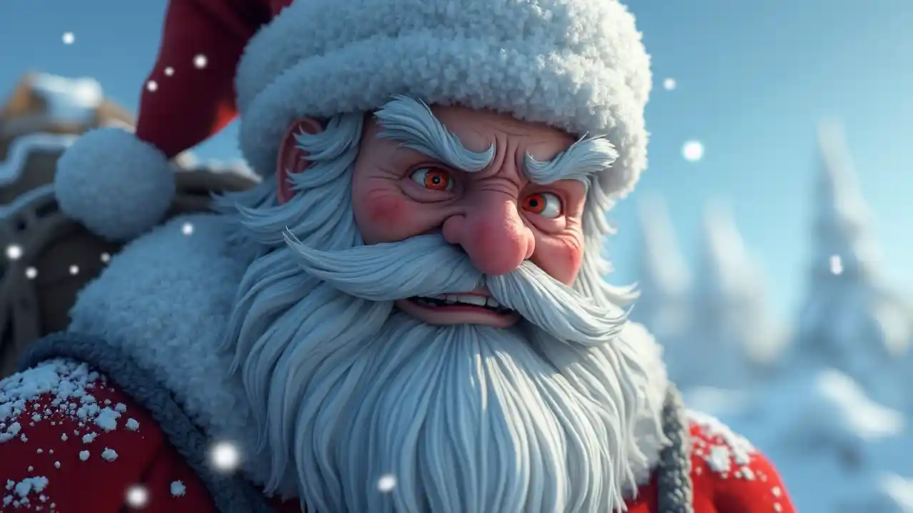 Πορτρέτο του Αϊ Βασίλη, Κόκκινα μάτια, Λεπτόγυρα, Εξαγριωμένος, 3D Animation Style, Αρκτική Βίτι-Land