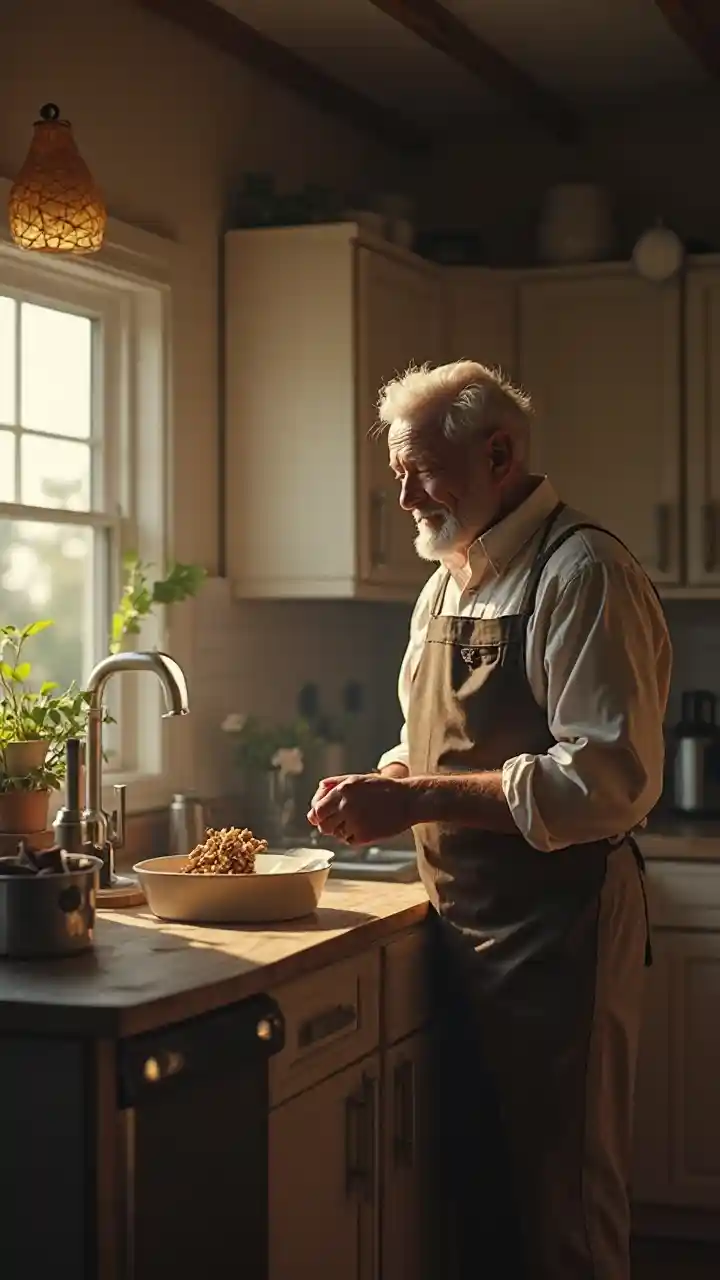 δημιουργεί μια εικόνα ενός παππού σε μια κουζίνα