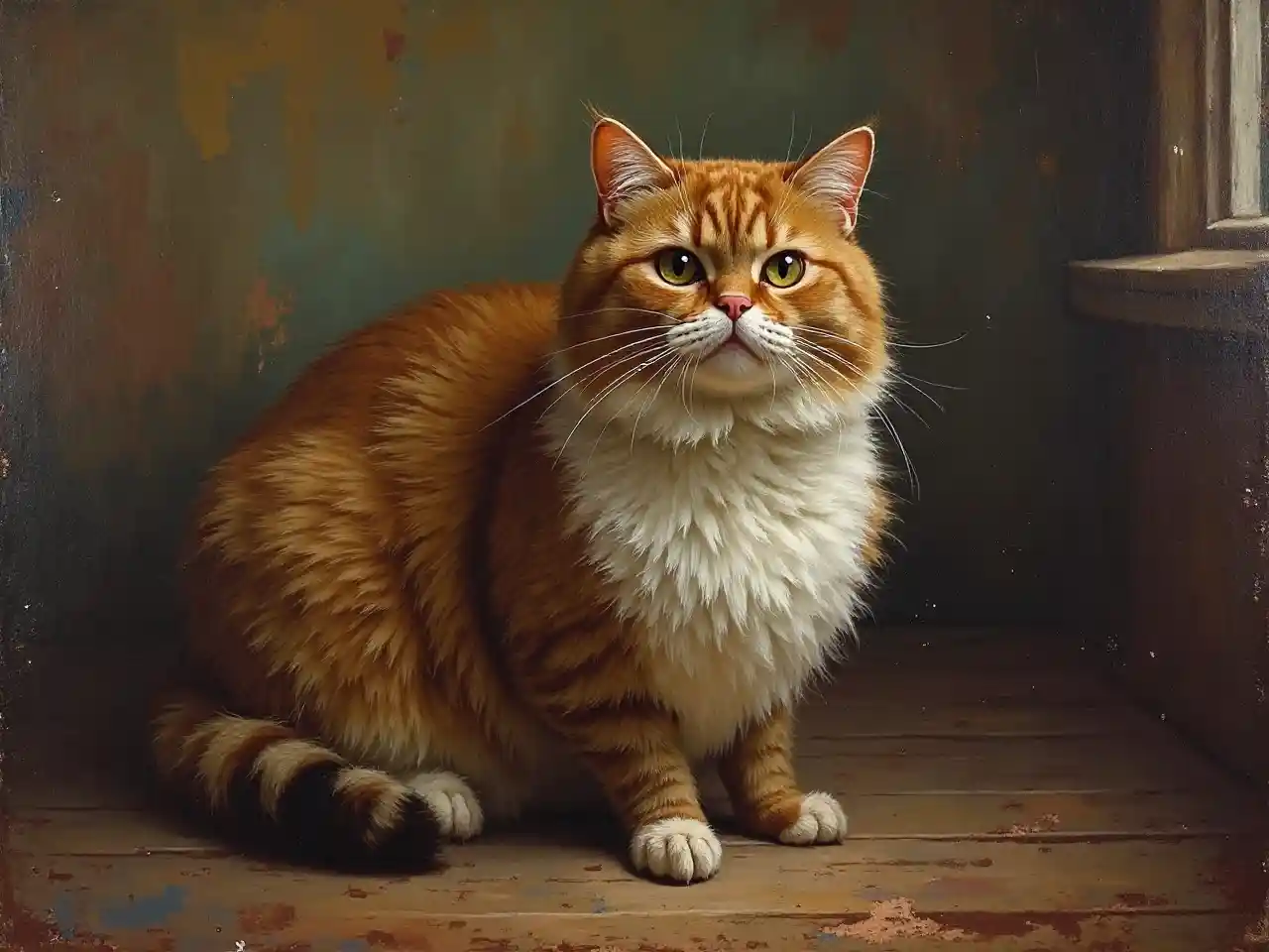 ζωγραφική μιας χοντρής γάτας ως Βικτωριανή καλλιτέχνις, ζωγραφική