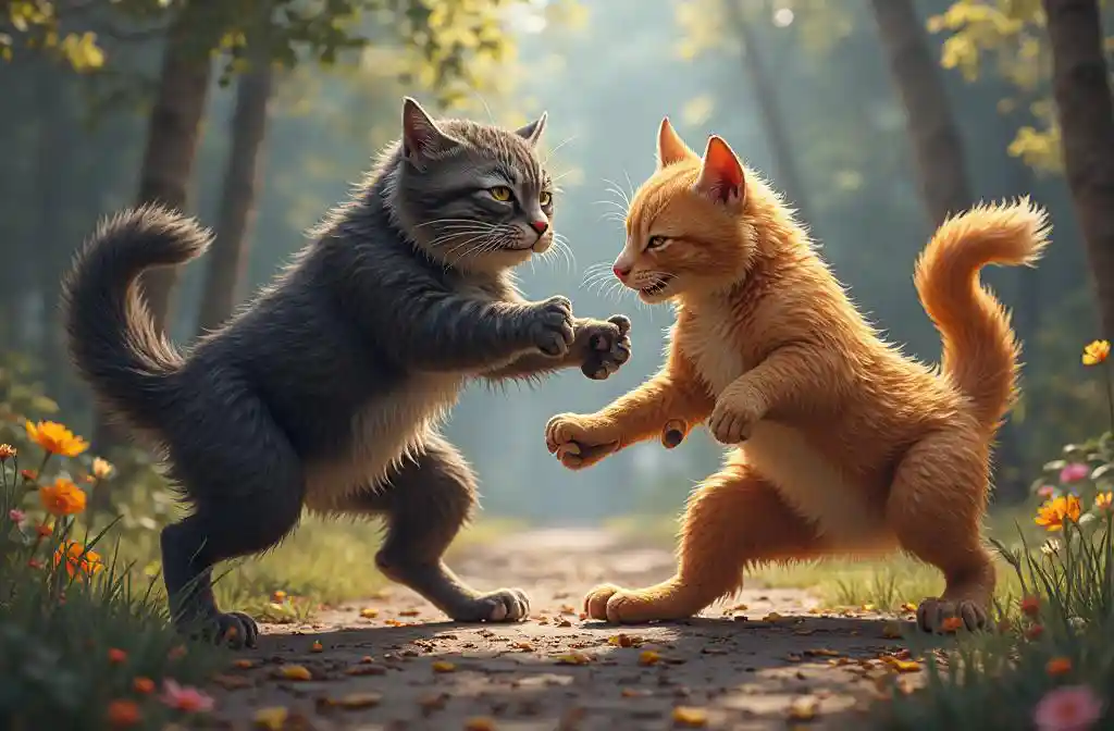 Fantasía vívida de peleas de perros y gatos en la naturaleza