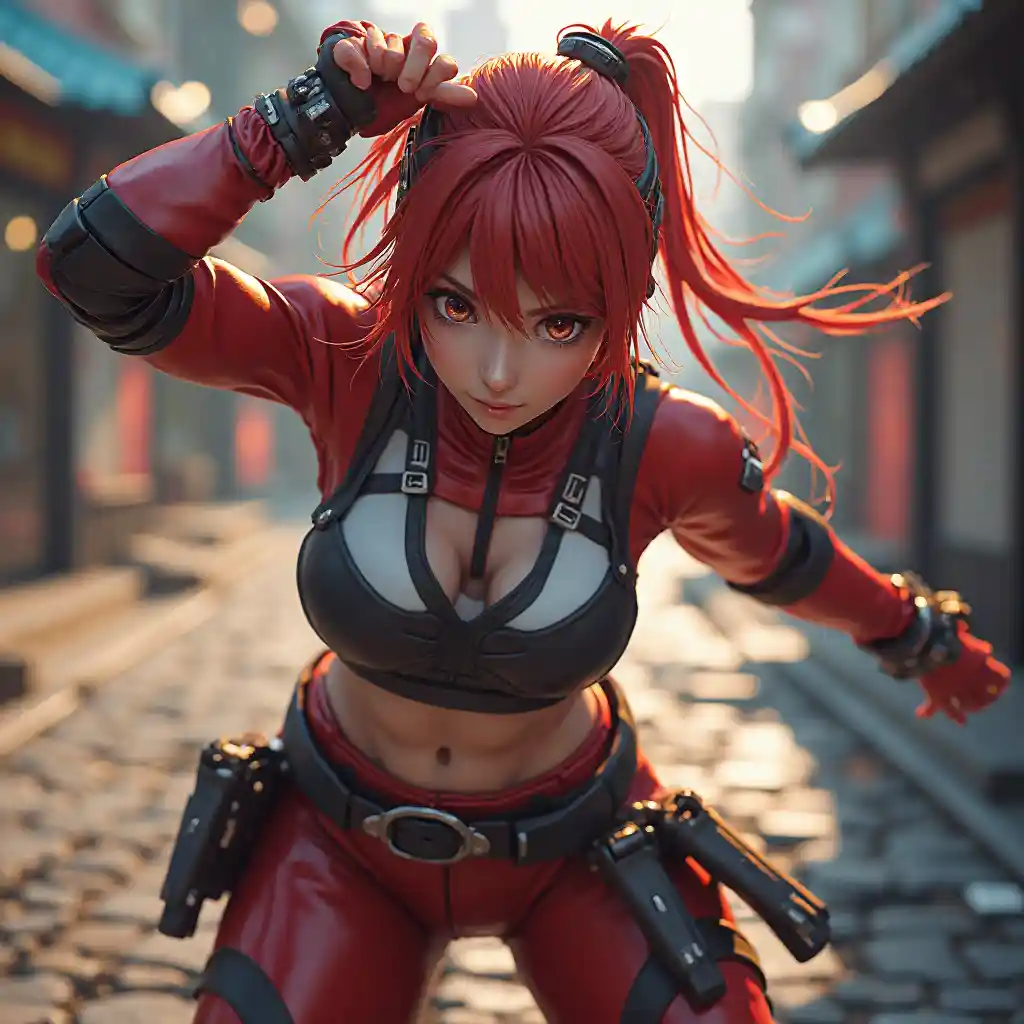 Fotografía hiperrealista de Asuka en una escena de acción dinámica
