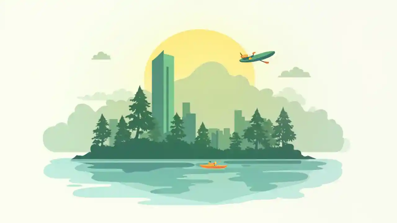 Cree un logotipo moderno para la organización ambiental aththanagalu oya. use oya, árboles nativos sri lankan, un rascacielos, un kayak.