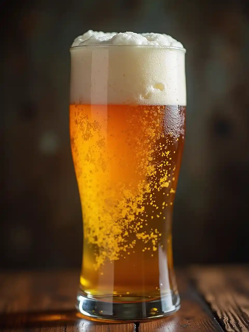 foto profesional de un vaso de cerveza, espuma de cerveza saliendo de un vaso