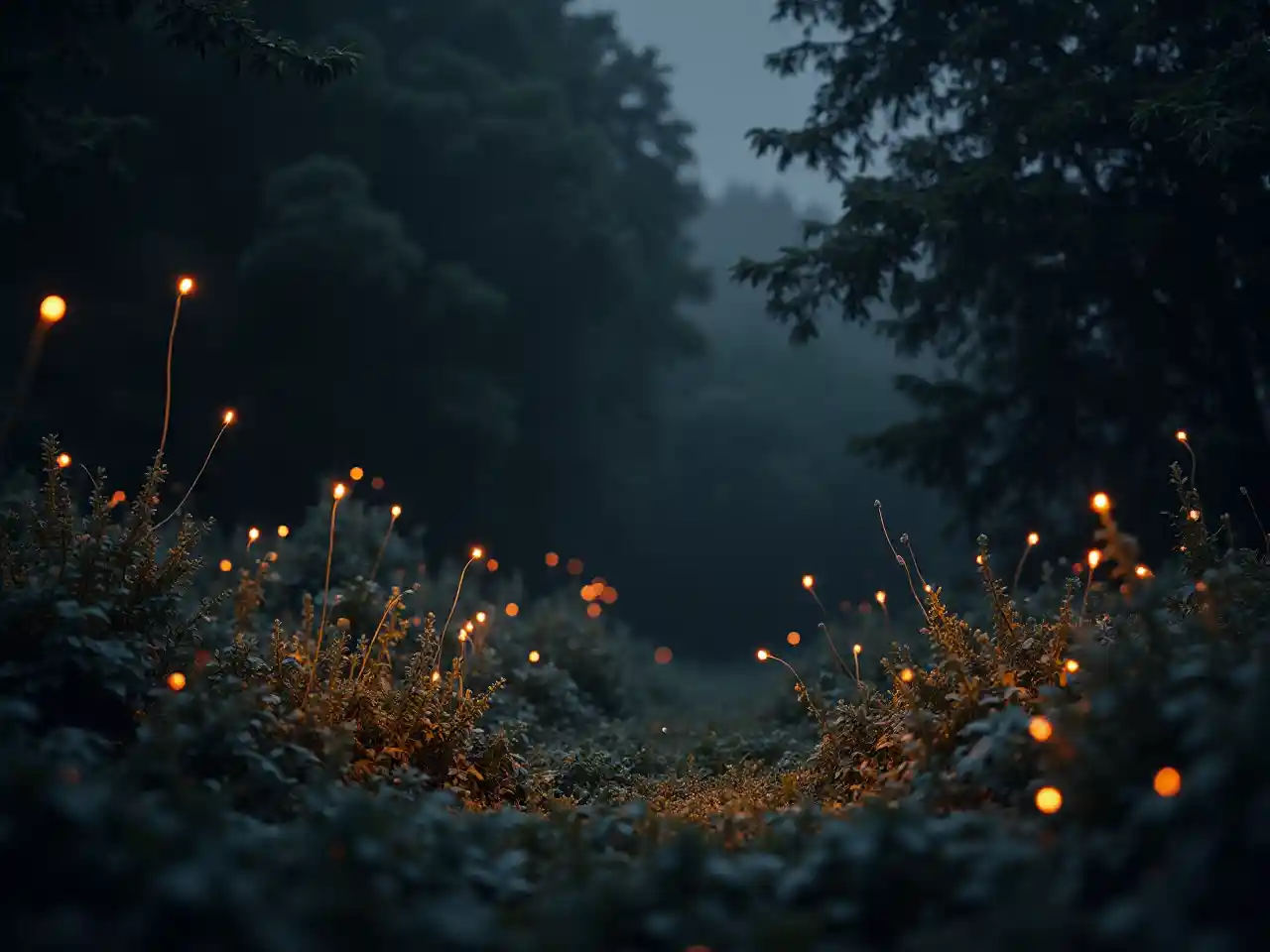 ElijahPaisaje negro 3d full black donde luciérnagas en el jardín