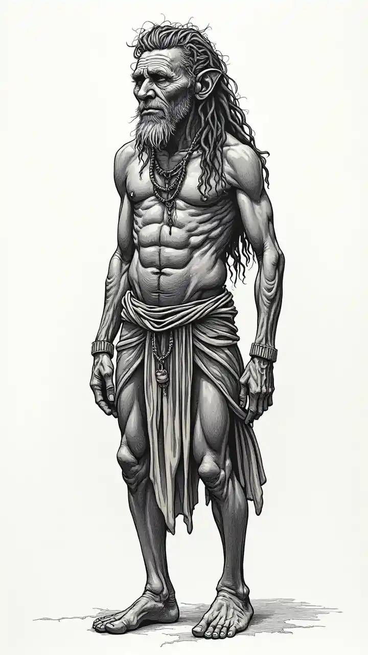 pluma negra y tinta, un retrato de cuerpo completo de un pigmeo tribal