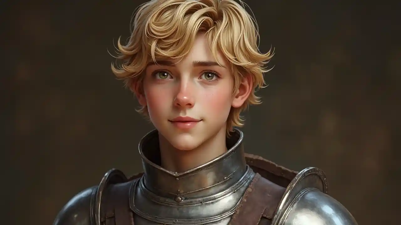 HarrisonJoven caballero realista y amigable con cabello rubio en estilo renacentista