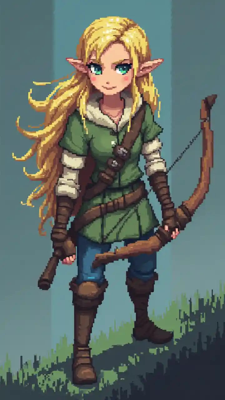 pixel art de un elfo rubio arquero en un videojuego