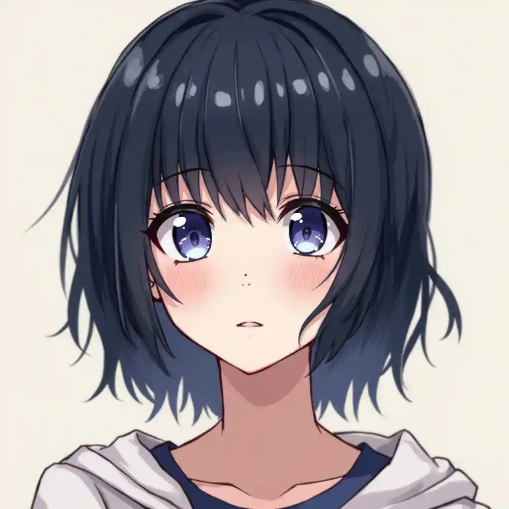 OliverUna chica con ojos azules semi-púrpuras y cabello negro corto (su flequillo: estilo corte él), → Haikyuu oc