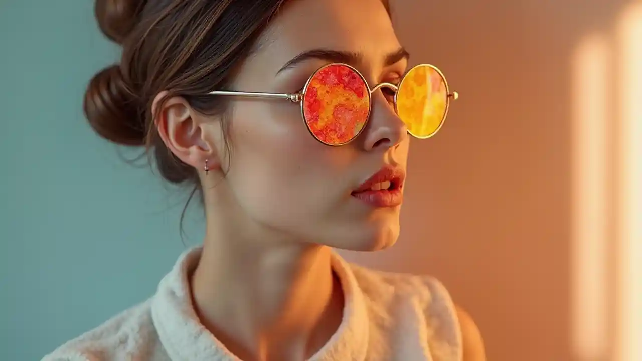 AidenColección de joyería minimalista de colores vibrantes con materiales ACRÍLICOS y concreto inspirados en la arquitectura de ricardo bofill colocados sobre una mujer de bello rostro
