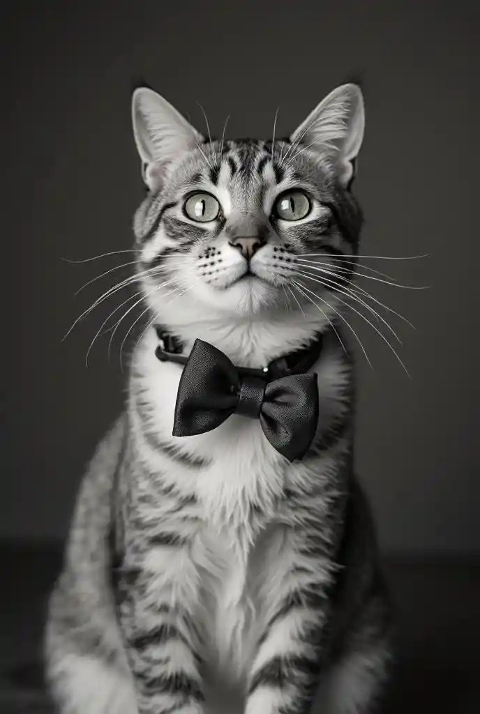 ColtonUna foto vintage en blanco y negro de un gato con pajarita