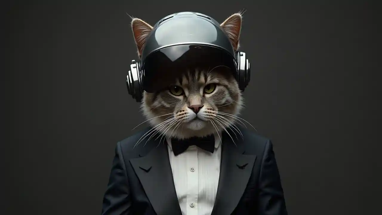 EllaBritish Shorthair con esmoquin y casco estilo daft punk