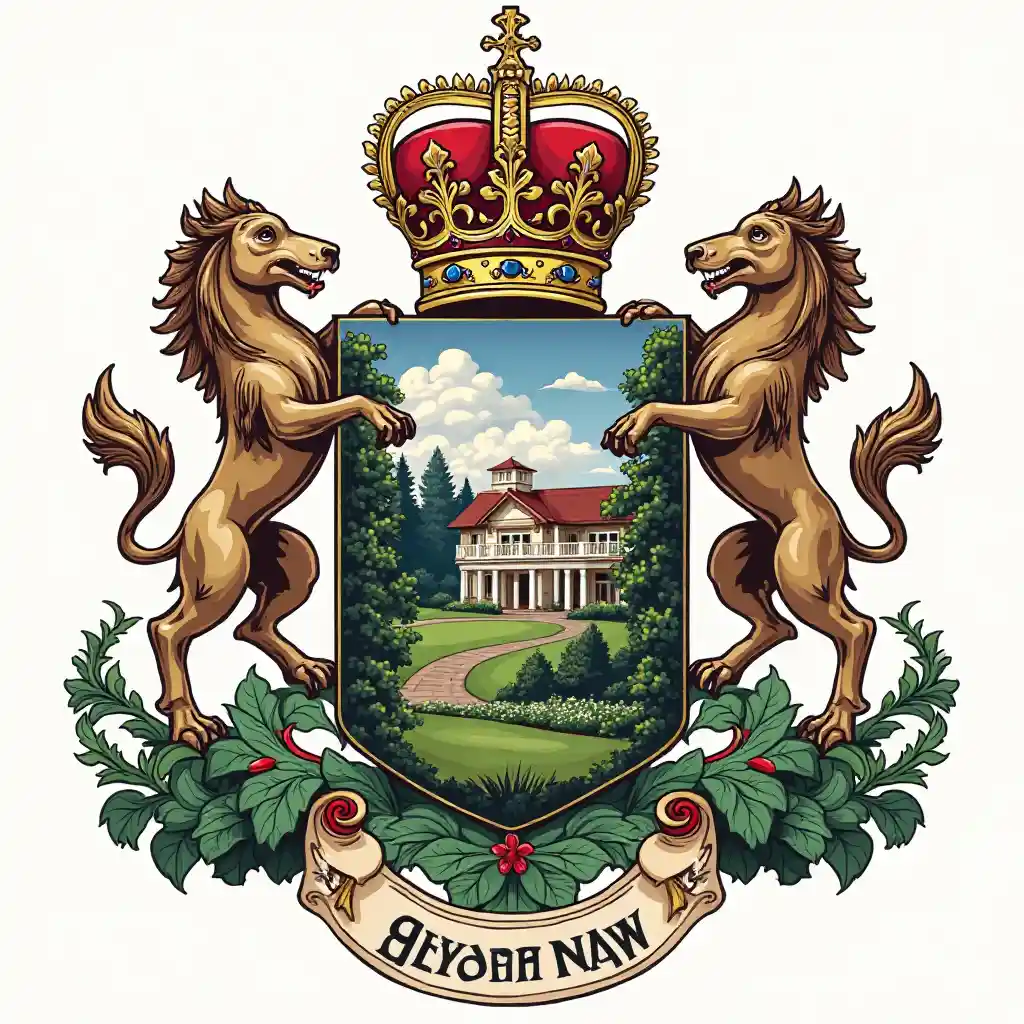 Actúa como historiador real y creador de la cresta familiar y crea la cresta para Bryant Country Club and Resort. Crear cresta para la bandera y el edificio
