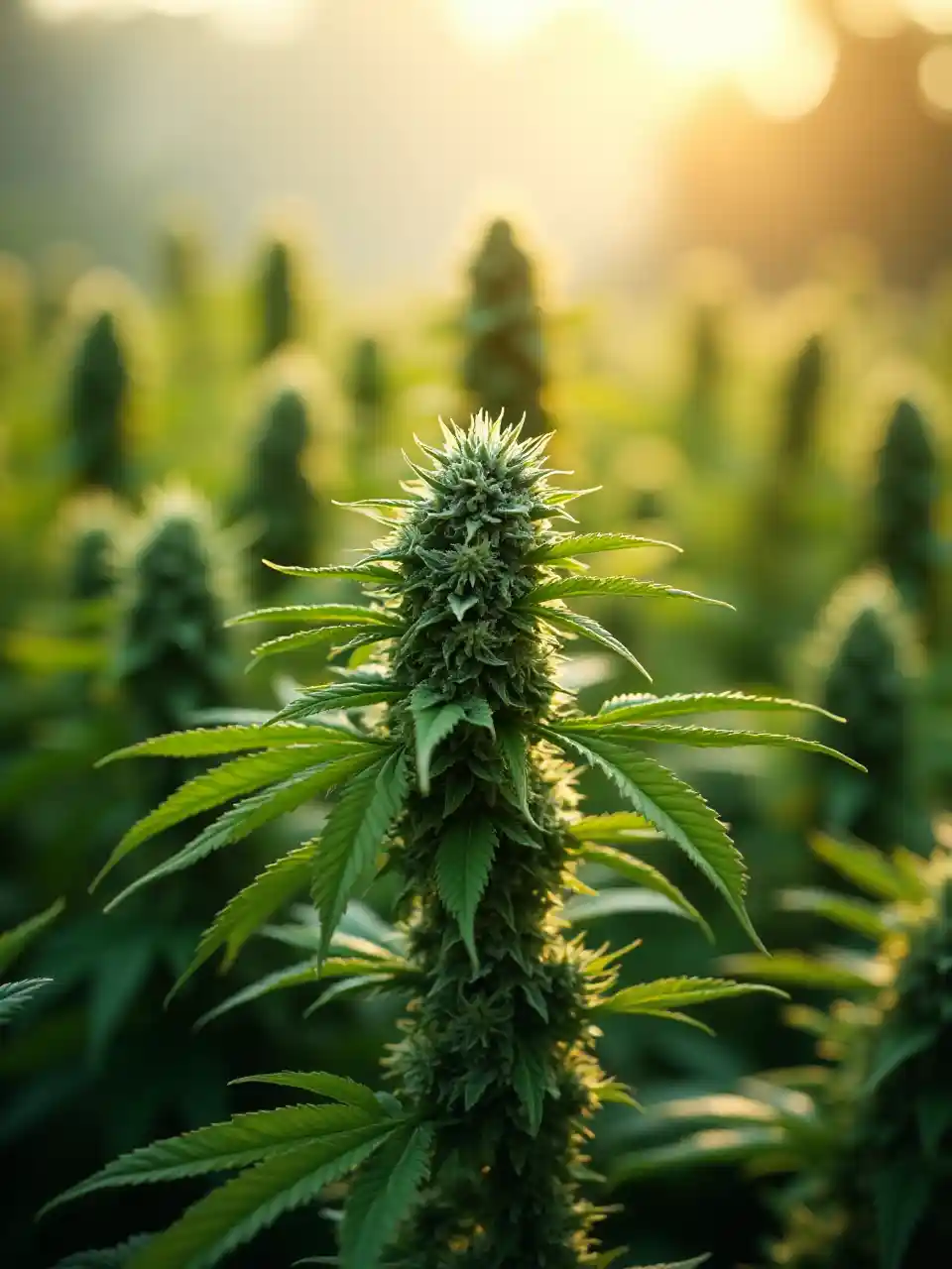 NathanCannabis creciendo en un campo con luz solar filtrada