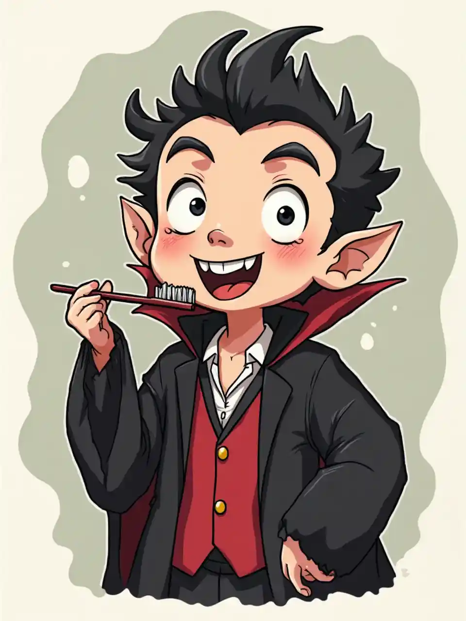 Un juguetón vampiro de dibujos animados que disfruta del tiempo de cepillado de dientes