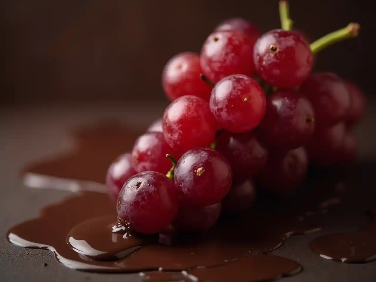 racimo de uvas rojas sumergido en chocolate derretido deliciosa iluminación dramática deliciosa Profundidad de campo