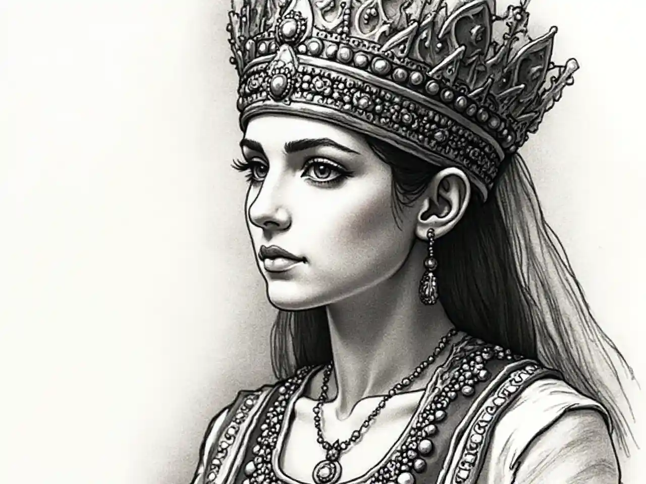 Cleopatra, boceto con pluma de tinta, poca luz, bajo detalle,
