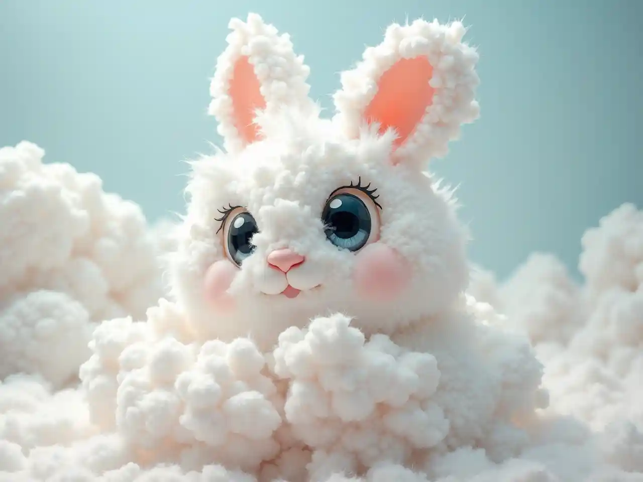 Matthewun lindo conejito esponjoso de ojos grandes celestial hecho completamente de nubes hinchadas