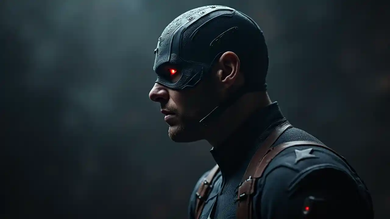 Espeluznante capitán América en fondo oscuro