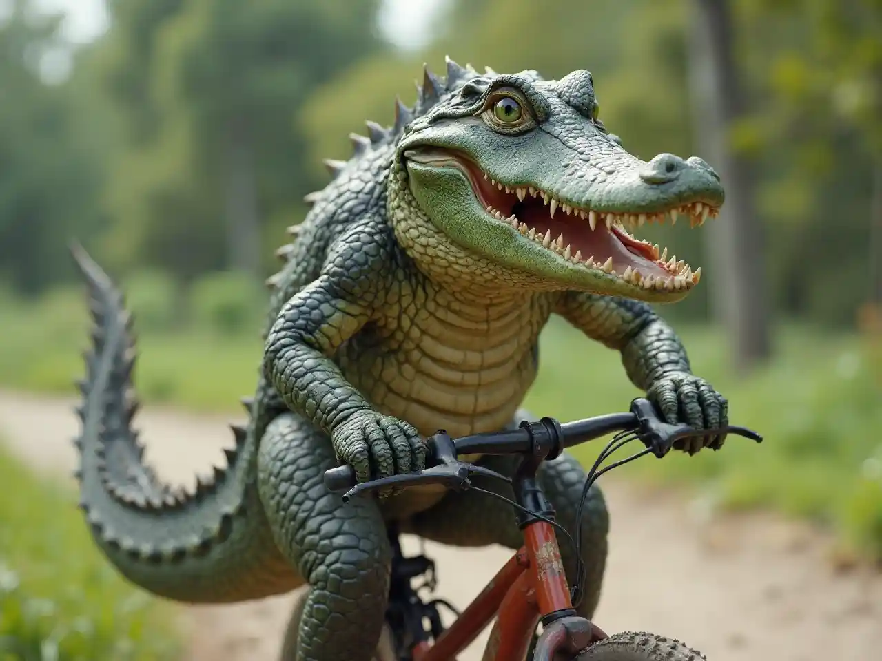 Un cocodrilo montando una bicicleta en una imagen divertida