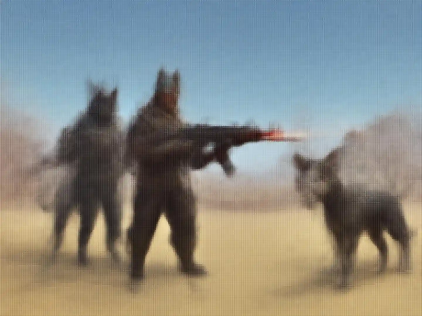 gatos cibernéticos versus perros cibernéticos con uzis láser claros entre edificios del desierto, pieles de perro y gato en Fortnite mod, mejores caras de perro y gato, más dinámicas, en lucha