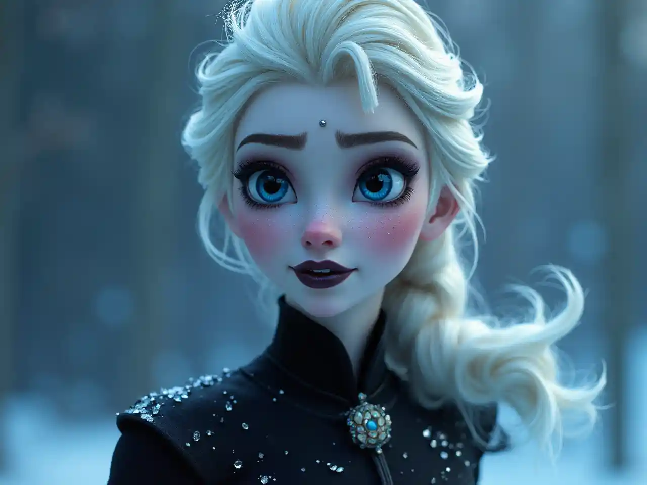 Elsa de Frozen con maquillaje oscuro