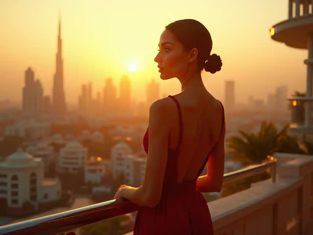Capturando la fuerza y la confianza en el vibrante atardecer de Dubai