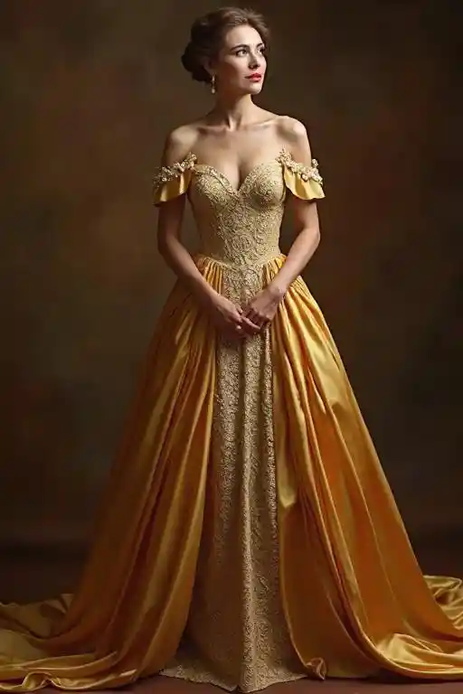 WyattHermana real, mujer madura, foto de cuerpo completo, elegancia clásica, vestido elegante, poses elegantes, expresión llena de elegancia, atmósfera noble, decoración lujosa, oro de
