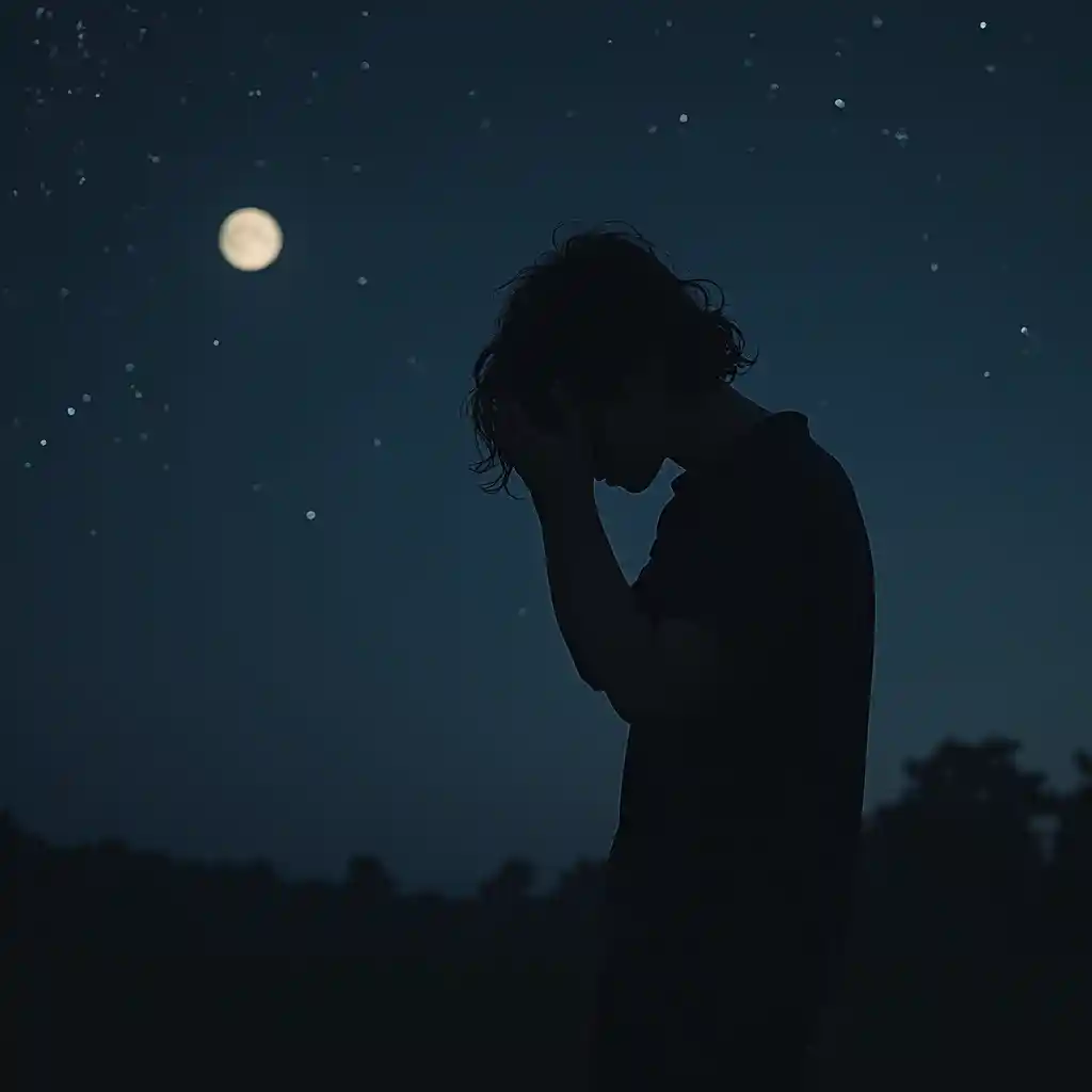 Esta es una imagen de un momento difícil, donde mis sentimientos de tristeza y frustración con el tiempo crean una sensación de vacío y soledad. La escena se desarrolla por la noche, con un telón de fondo de un cielo oscuro y estrellado, que enfatiza el sutil resplandor de una luna distante. En primer plano, se encuentra una figura silueteada, con las manos apretadas alrededor de mi cabeza, simbolizando mi apoyo emocional. Con el tiempo, me he dado cuenta de que enfrentar mis miedos y desafíos de frente es la única manera de superarlos. Siempre que me encuentro en un punto bajo, busco la fuerza para seguir adelante, incluso si siento que nada me está funcionando. He tenido que enfrentarme a mis propios demonios internos, pero también reconocer que muchas de mis acciones y motivaciones son alimentadas por el amor y el apoyo de mis amigos y familiares. Me han ayudado a ver más allá del dolor y la oscuridad, hacia la luz y el calor de un nuevo día y un nuevo comienzo.