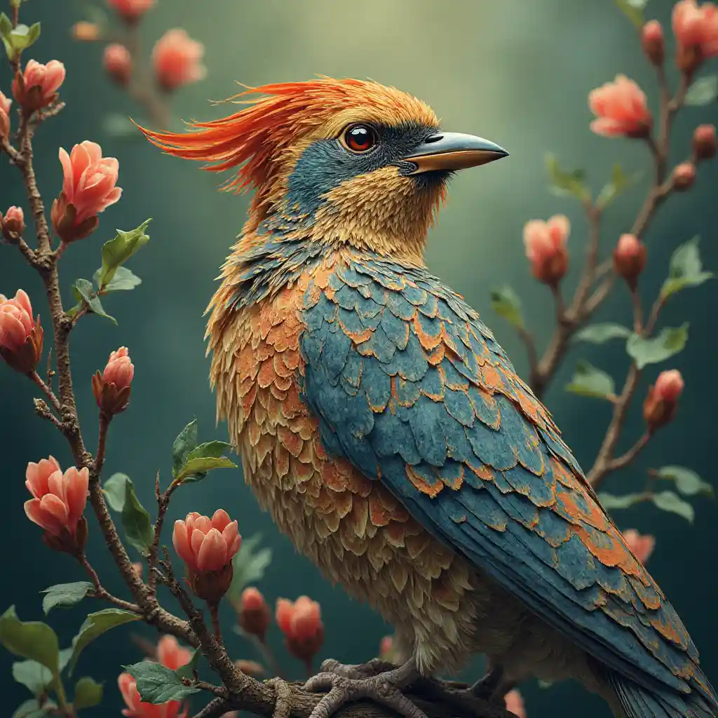 Bird Bohemian Waxwing, Bombycilla garrulus, representado con detalles intrincados y elementos ornamentados, con un estilo de ilustración detallado que recuerda a Johanna Rupprecht y William Morris, utilizando técnicas de renderizado de octano. Esta impactante representación captura una mezcla armoniosa de naturaleza y arte, inspirada en las imágenes de tendencias en ArtStation, integrando sutiles modificaciones creativas para una perspectiva única.