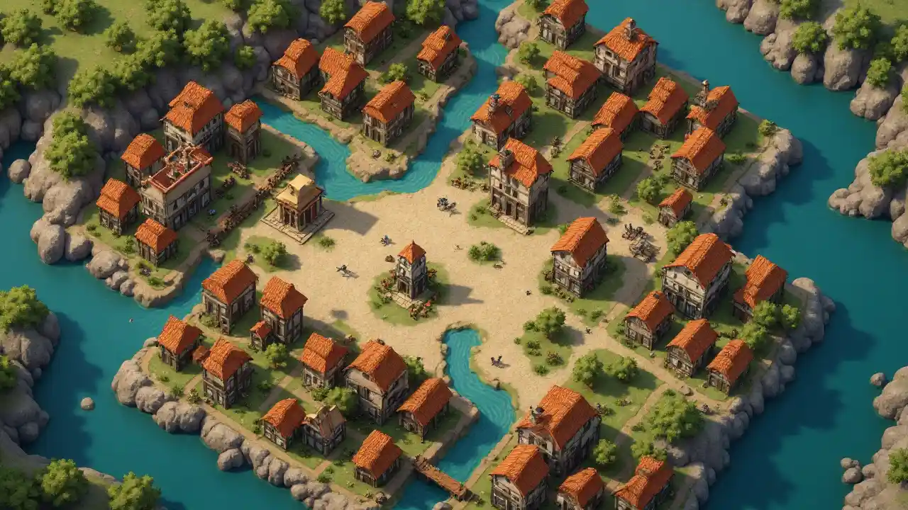 Mapa de la ciudad de vista de arriba hacia abajo para la campaña de fantasía. tamaño mediano, con espacio para que los jugadores naveguen por el mapa