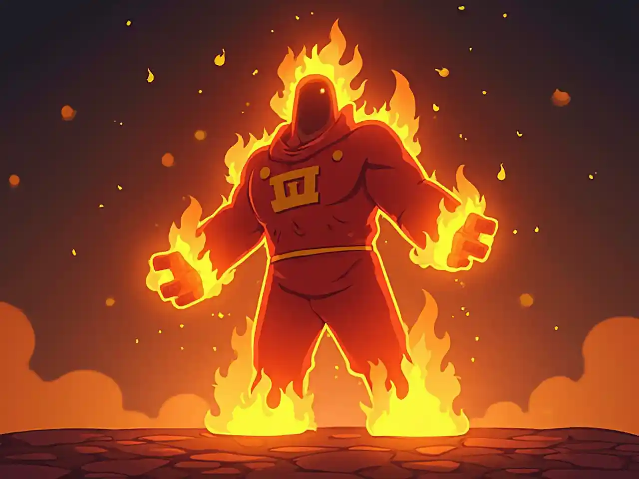 SavannahBrawl protagoniza un personaje llamado pedernal: silueta/cuerpo humano completamente envuelto en llamas, atuendo de color fuego.