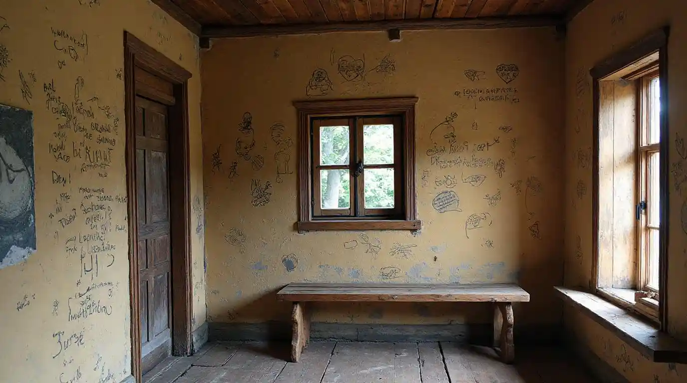 Casas de madera en Alemania, paredes garabateadas con folclore.