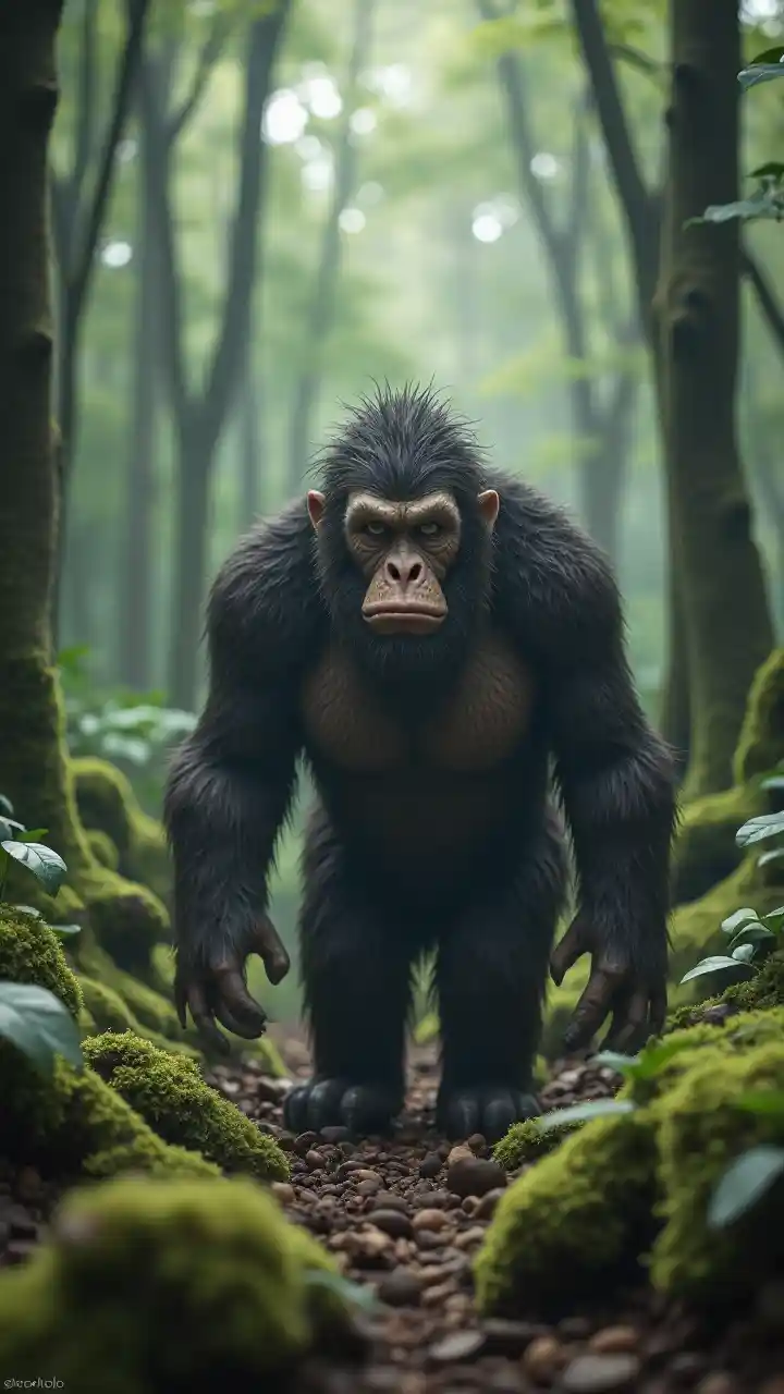 Scarlettcrear un yeti hiper real pequeño en un bosque