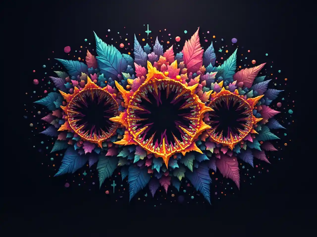 Colorido patrón geométrico fractal abstracto sobre un fondo oscuro.