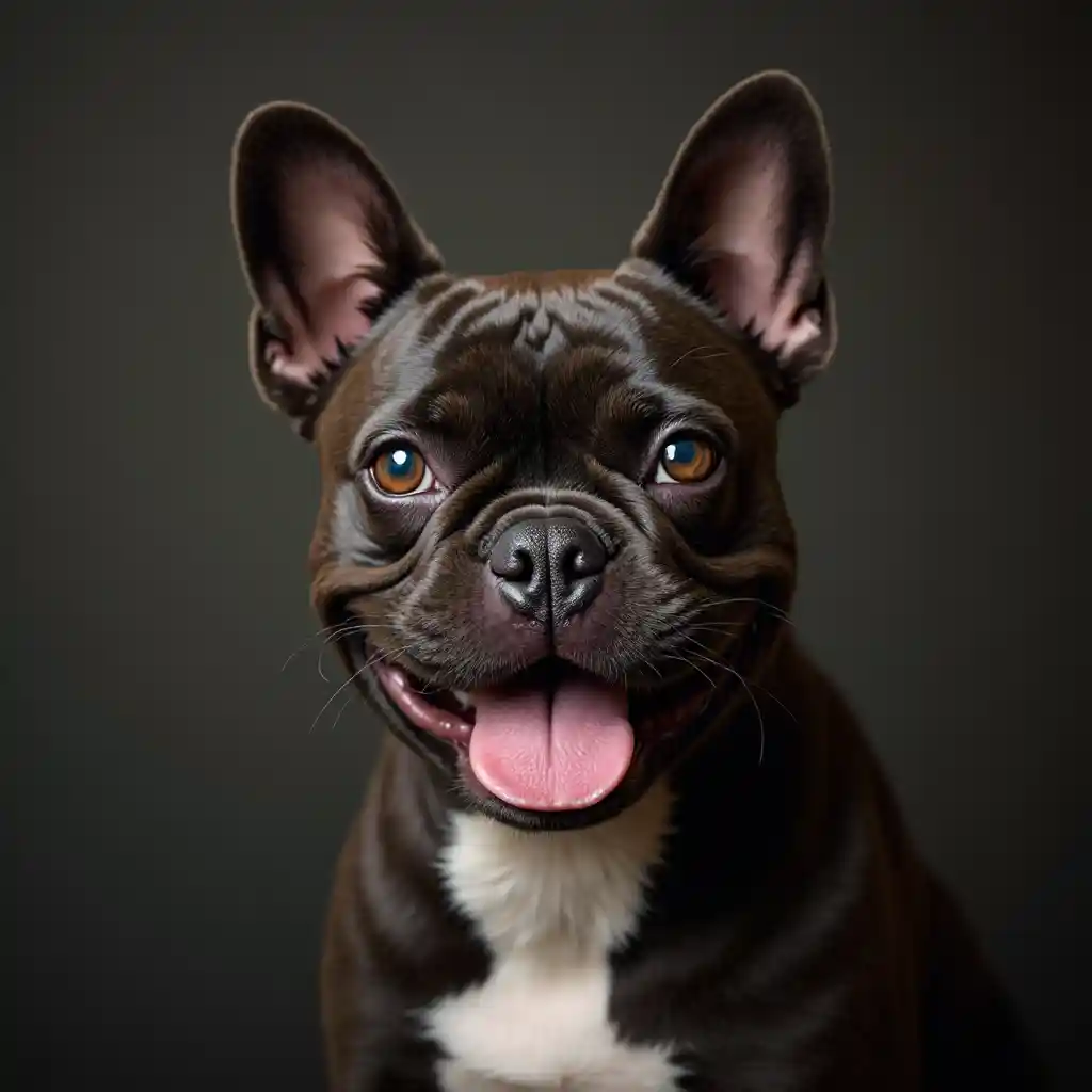 BellaRetrato de un bulldog francés marrón oscuro, detallado, alta resolución, fondo borroso, ojos verdes, Smilin