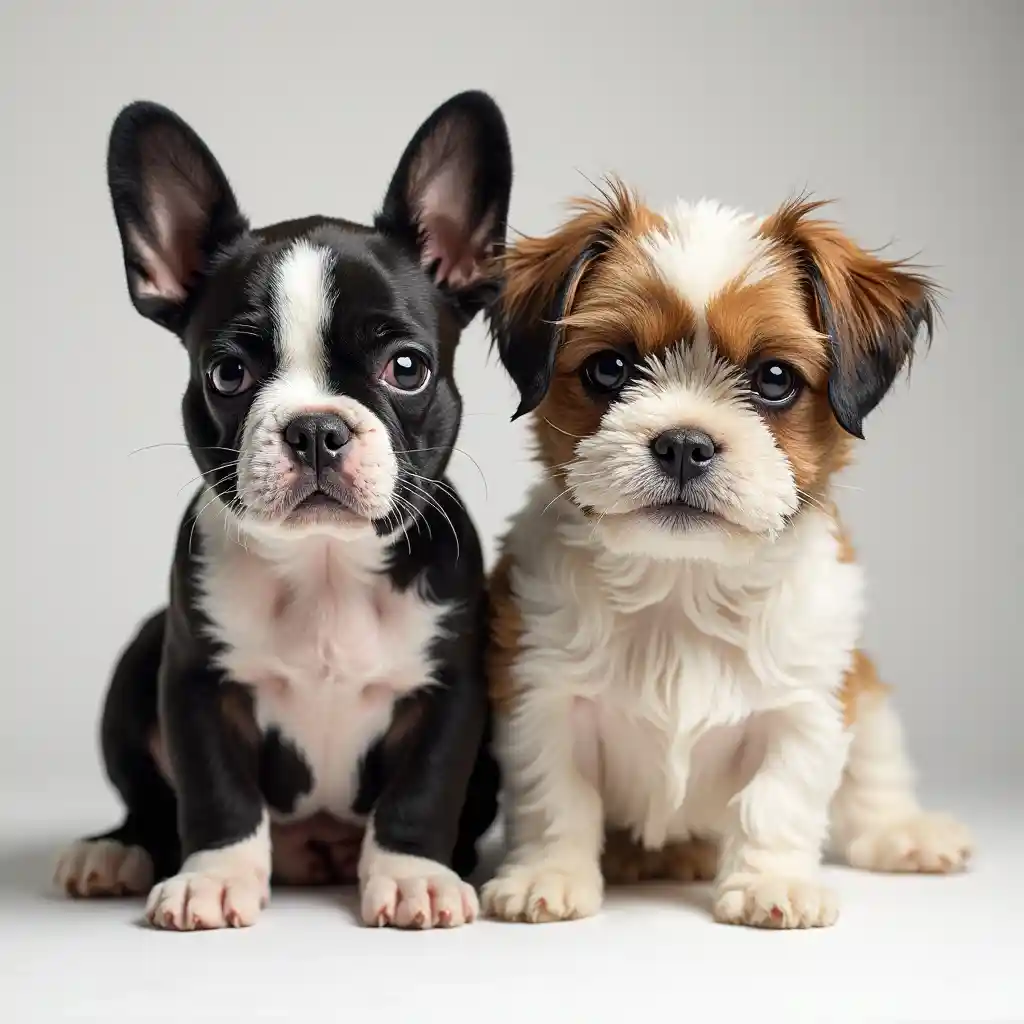 Bulldog Francés Blanco Negro y Shih Tzu Blanco Marrón