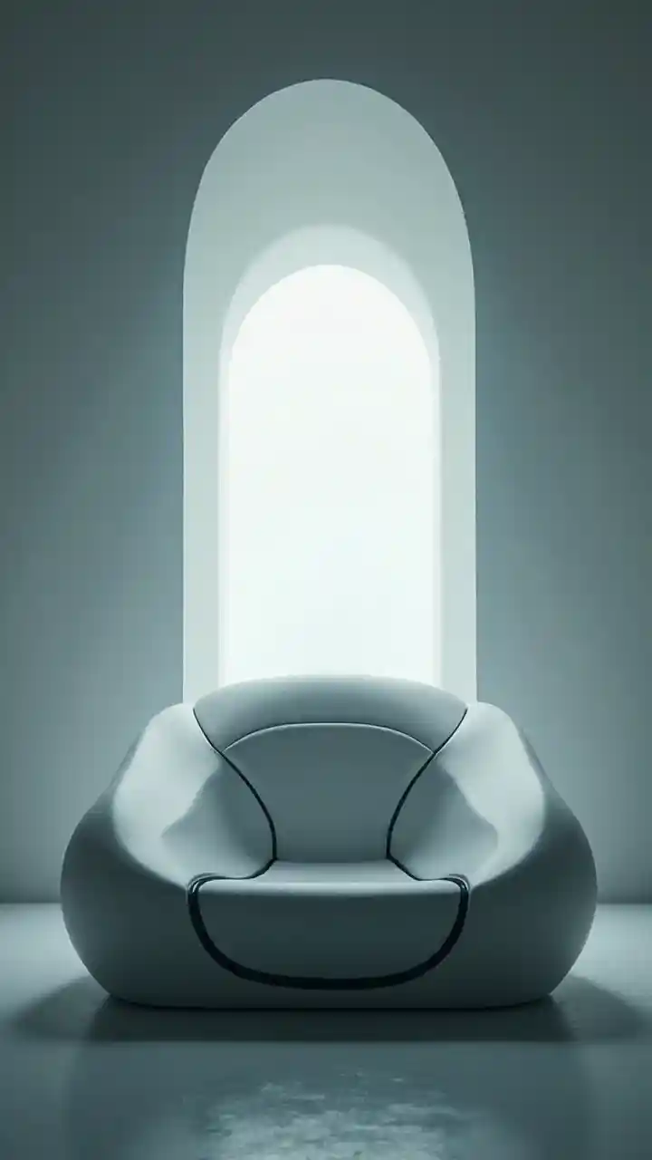 Una silla futurista con un portal iluminado místico