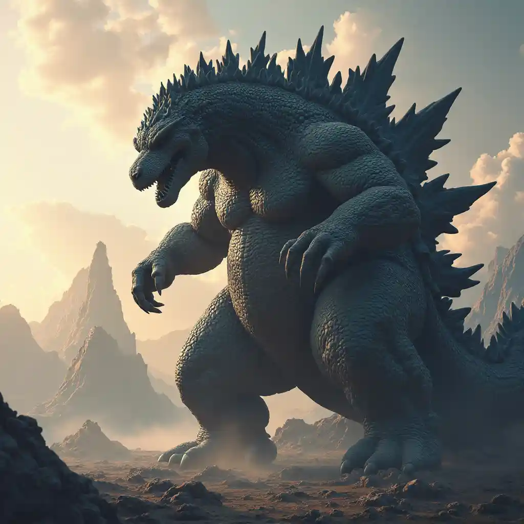 Godzilla en cuclillas sobre un continente con su gran trasero gordo