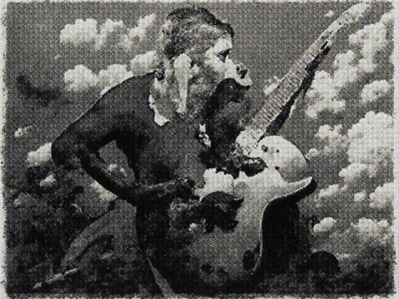 Representación artística de una guitarra en blanco y negro