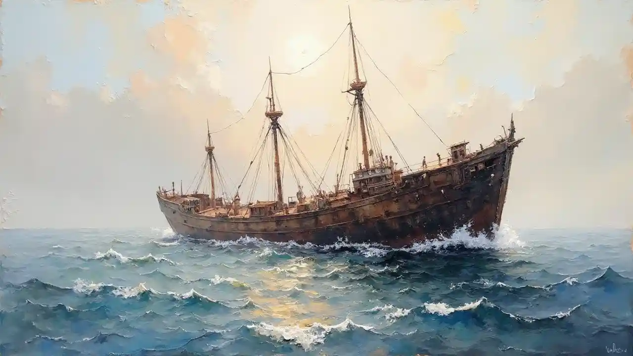neo-impresionismo estilo expresionista pintura al óleo de un naufragio, lisa pintura post-impresionista impasto acrílico, gruesas capas de pintura de textura neutra --ar 16:9 --s 20