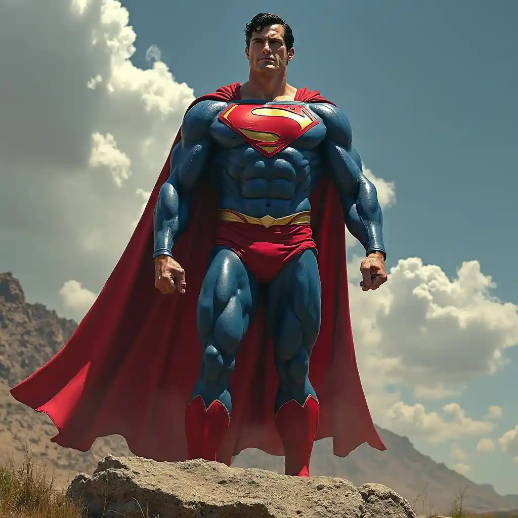 Superman enorme musculatura, etendu sur les sol, etourdi, du sang sur le sol